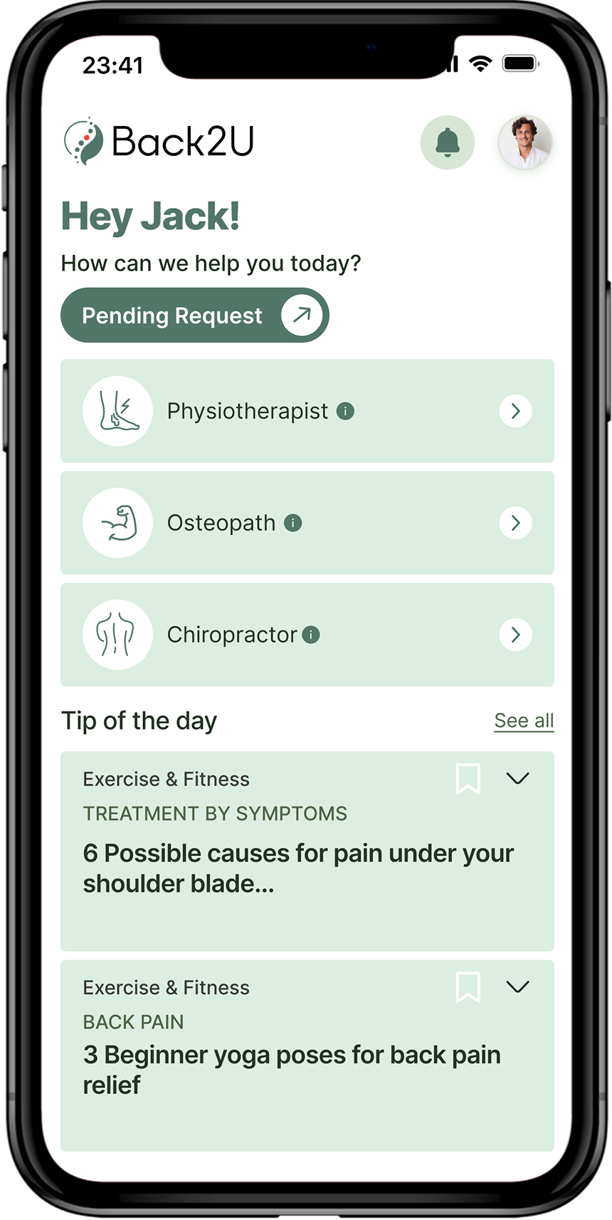 Back2U provides real-time, location-based chiropractors, physiotherapists, and osteopaths to consumers - anywhere, anytime.